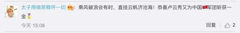 “乘风破浪会有时,直挂云帆济沧海!恭喜卢云秀又为中国军团斩获一金”