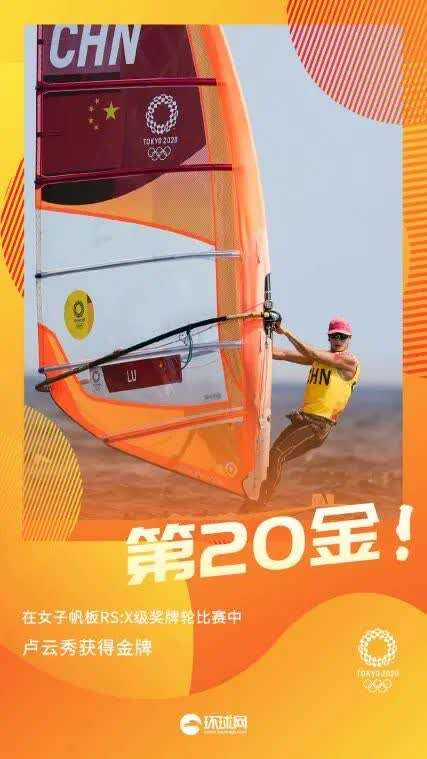 北京时间7月31日,2020东京奥运会帆船女子帆板RS:X级奖牌赛在江之岛展开争夺。最终,中国选手卢云秀获得冠军。法国选手和英国选手分获二、三名,这是中国代表团的第20金。