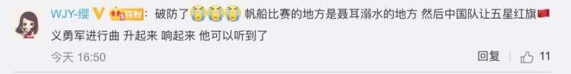 “ 破防了!帆船比赛的地方是聂耳溺水的地方,然后中国队让五星红旗,《义勇军进行曲》升起来,响起来,他可以听到了。”
