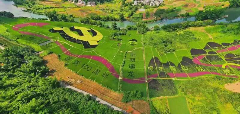 “彩色水稻”团队在广西桂林市阳朔县绘制的“3D五彩稻田画”