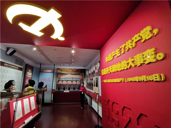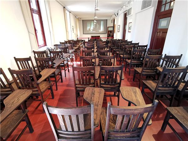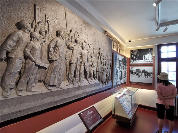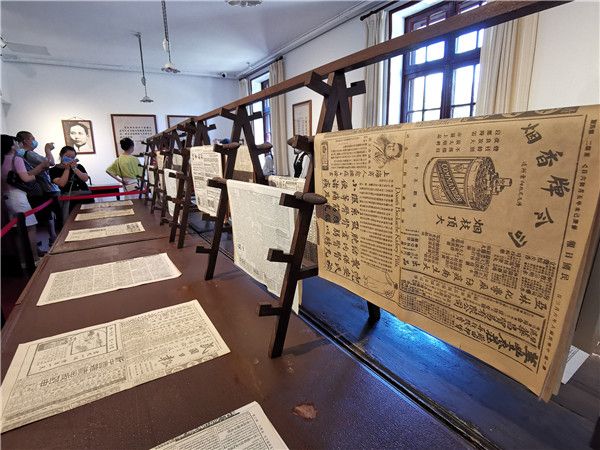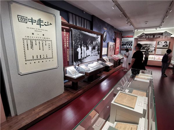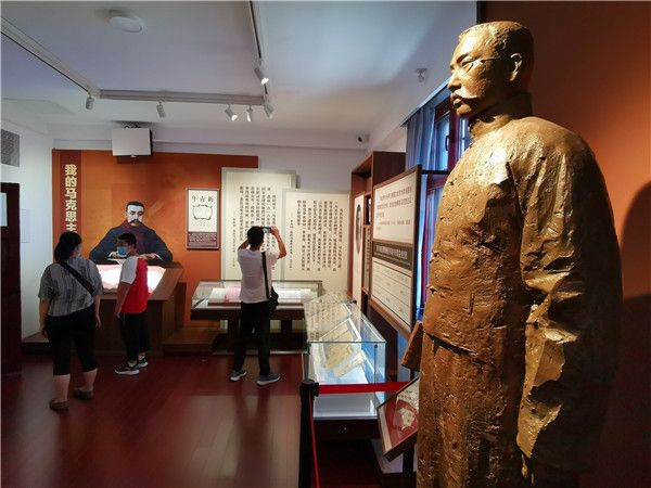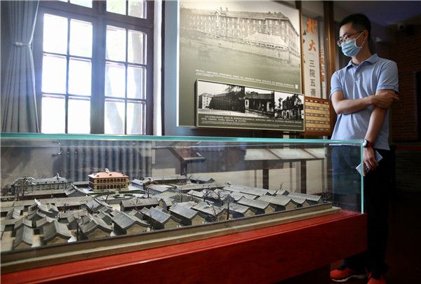 2021年8月1日,一名参观者在北大红楼观看北大“三院五斋”微缩模型。当日,北京大学红楼正式向个人开放。