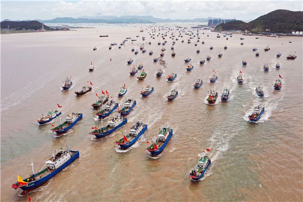 浙江省舟山市2000多艘单船桁杆拖网(桁杆拖虾)、笼壶类、刺网类、围(敷)网类作业渔船以及渔业辅助船,结束了为期三个月的伏季休渔期,从沈家门渔港等地开赴禁渔线外的东海海域进行捕捞作业。待渔船归来,将有大批梭子蟹等鲜活水产品上市。