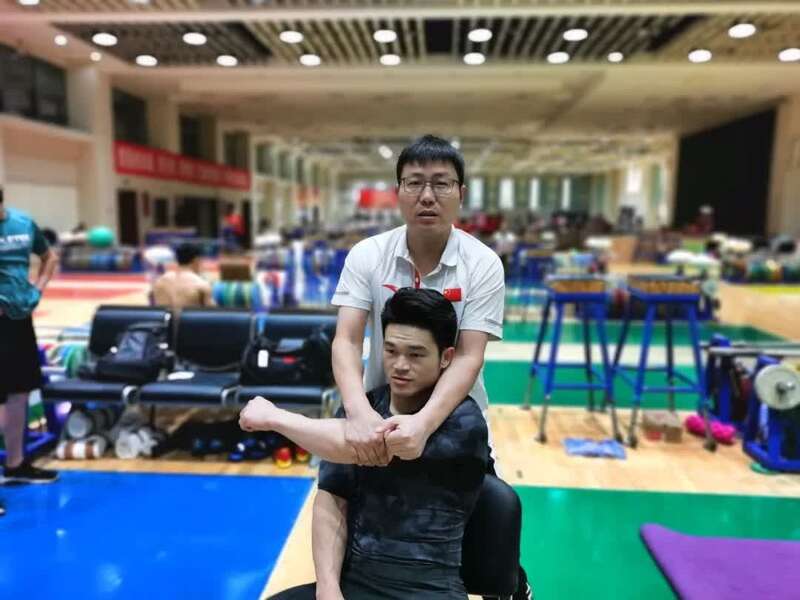 日常医疗康复工作期间,沈异副主任医师采取多种措施、方法,确保石智勇身体快速恢复,顺利完成训练比赛任务。常通过中医传统的针灸疗法帮助石智勇解决腰伤困扰,一根根十几公分长的针灸针,扎进石智勇的腰部,同时通过不断行针手法,来松解石智勇深层腰肌深层筋膜,达到“得气”的针灸效果。