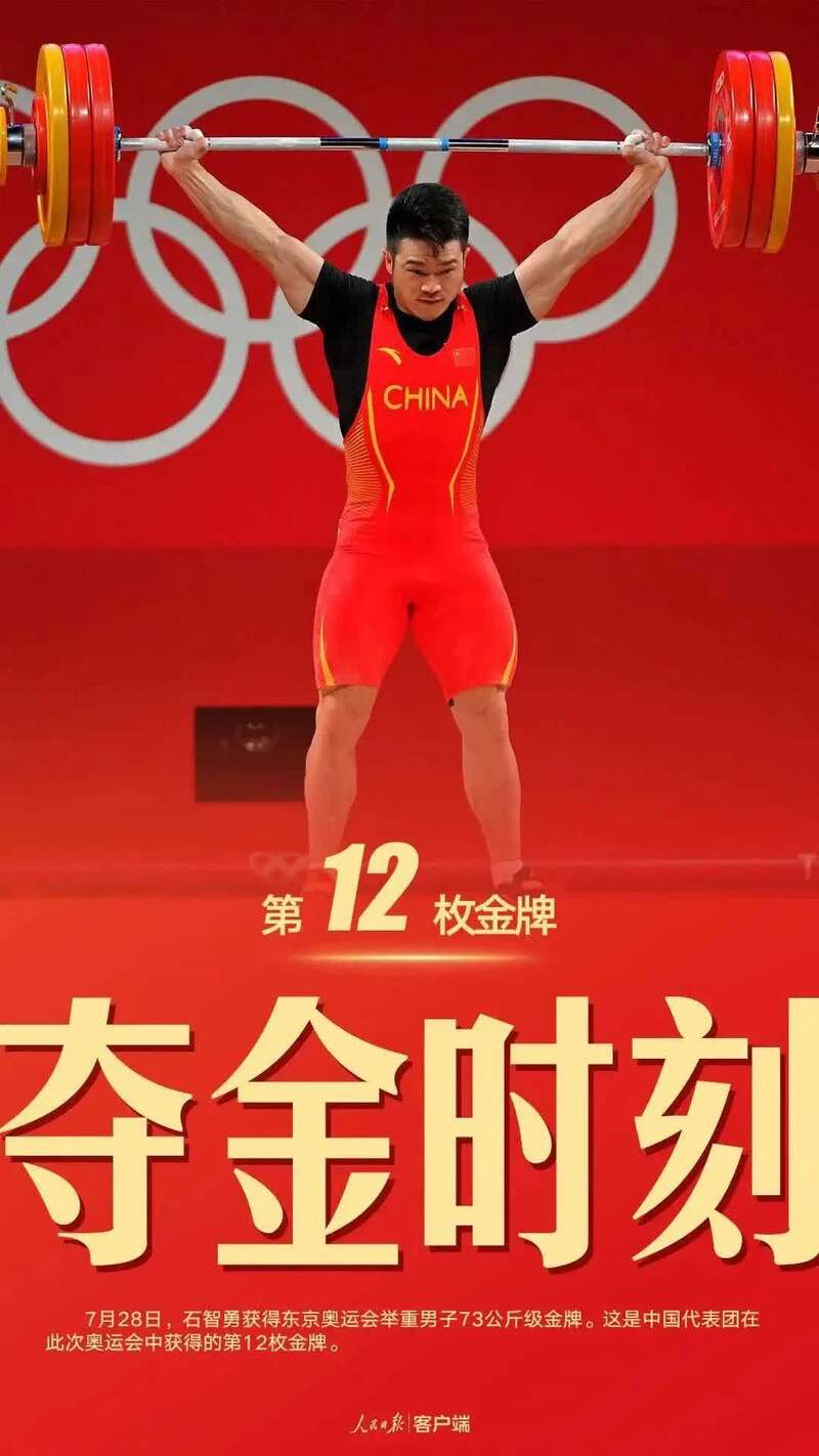 在7月28日晚的东京奥运会举重男子73公斤级比赛中,里约奥运会举重冠军石智勇以抓举166公斤、挺举198公斤,总成绩364公斤摘得金牌,并创造新的世界纪录。