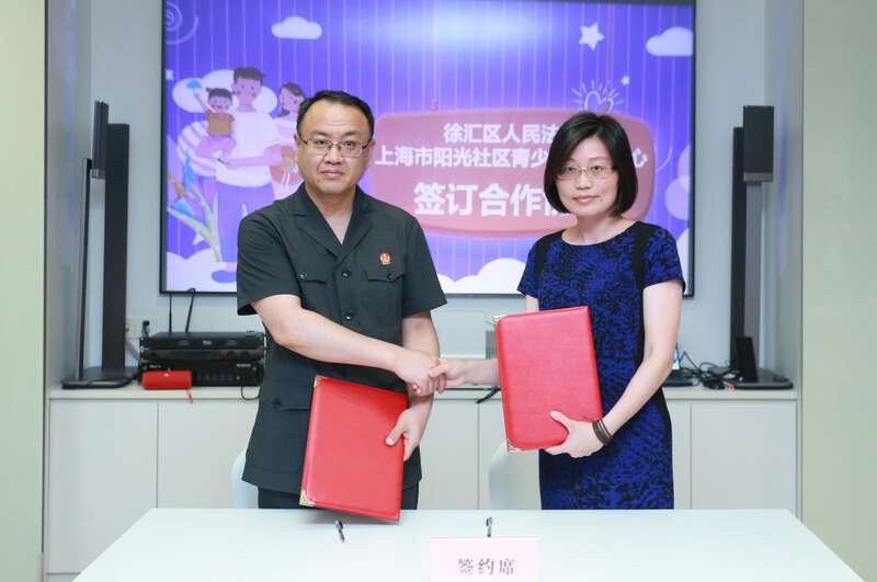 中国青年报客户端讯(张硕洋 中青报·中青网记者王烨捷)日前,上海市徐汇区青少年事务社工参与涉未成年人家事案件纠纷解决机制项目签约仪式暨探望监督基地揭牌仪式在徐汇区湖南街道举行。徐汇区人民法院(以下称徐汇法院)与上海市阳光社区青少年事务中心签订合作协议,并为6名青少年事务社工颁发了“社会观护员”聘书。