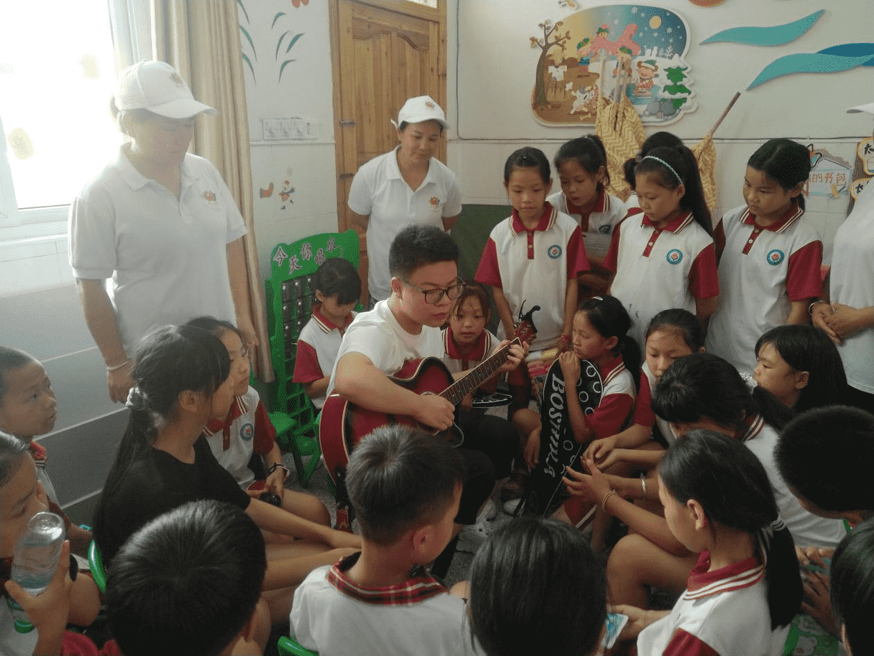 在江西泰和,团县委组织“童伴妈妈”、县志愿者们等公益伙伴,开展了以“关爱暑期生活,守护快乐成长”为主题的一系列公益服务。一群热爱音乐的留守儿童,一群90后音乐教师志愿者,他们弹着吉他,一起开心地唱歌跳舞,活动中,志愿者耐心地陪伴着孩子们,在美妙的吉他声与歌声中与孩子们渐渐地拉进了距离,用音乐的力量给孩子们进行暑期心理调适,孩子们的脸上写满了微笑。在当地,已经有越来越多的青年志愿者、大学生、企事业爱心青年关注到了共青团“童心港湾”公益项目,他们献爱心、展特长,加入到这支关爱农村留守儿童的队伍当中来,贡献自己的青春力量。