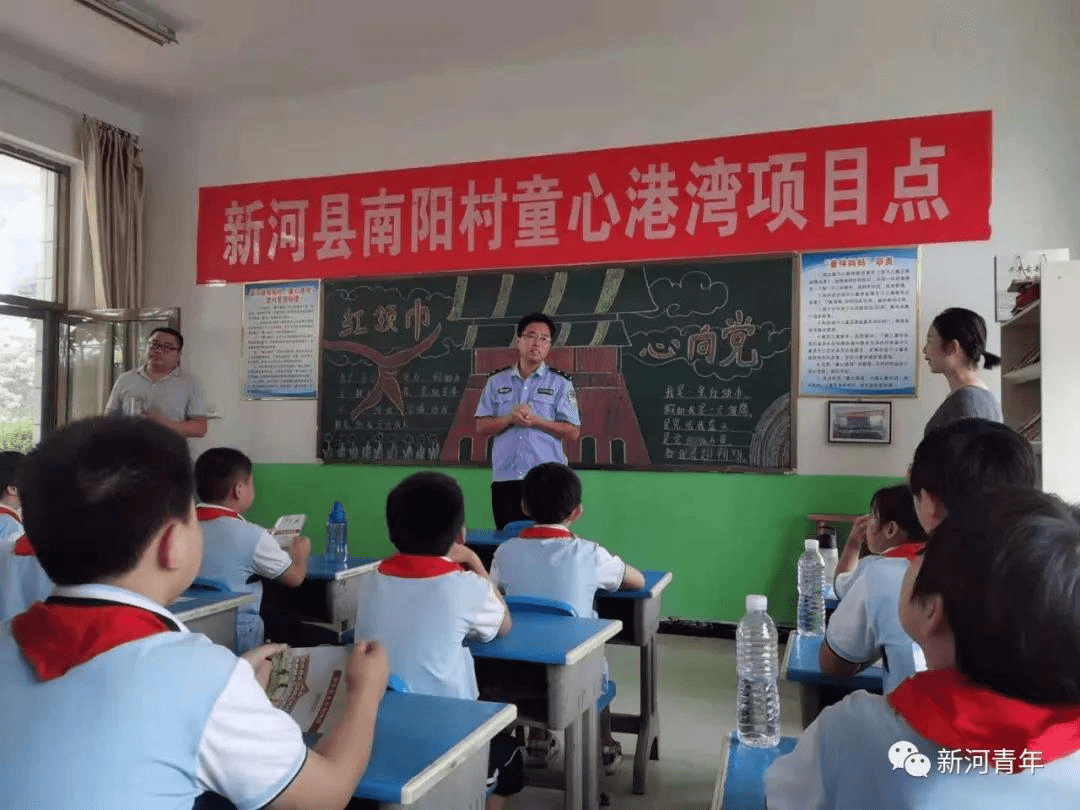 在河北新河,寻寨镇派出所警官李文华和他的同事们与往常一样,来到了南阳村“童心港湾”,开展暑期安全自护教育宣讲活动,他们最放心不下的还是孩子们的暑期安全,一再提醒孩子们要提高安全自护能力,“我觉得童心港湾是个非常好的项目,这就是在为人民、为群众办实事啊”,李警官这样说。本次活动他也是一如既往地用自己幽默的方式宣传防溺水安全知识,和孩子们进行安全知识问答互动。