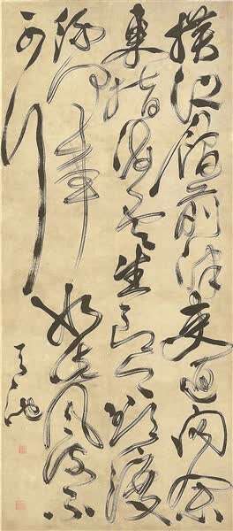 徐渭最擅于舍去大量细节,以简练的笔墨概括物象轮廓,涂抹出物象形态。他频频以“涂”的手法状写自己的心境,这在他的题画诗中处处可见。如他写:“世间无事无三昧,老来戏谑涂花卉”,还有“我亦狂涂竹,翻飞水墨梢”等。涂抹的笔法,将酣畅淋漓的气势准确地表现出来,极富绘画的动态美感,体现了创作者奔涌不息的生命气息。徐渭作品中这一最为突出的艺术表达手段,一方面与他综合地运用破墨、泼墨、胶墨、积墨、蘸墨等技法密切相关;另一方面,也源自他高超的书法功底,他能以草书入画,准确地把握住画面的整体感与流畅性。