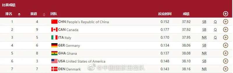比赛的过程惊心动魄,最终,他们跑出37秒92拿下小组第一,刷新赛季最好成绩,直接晋级决赛!