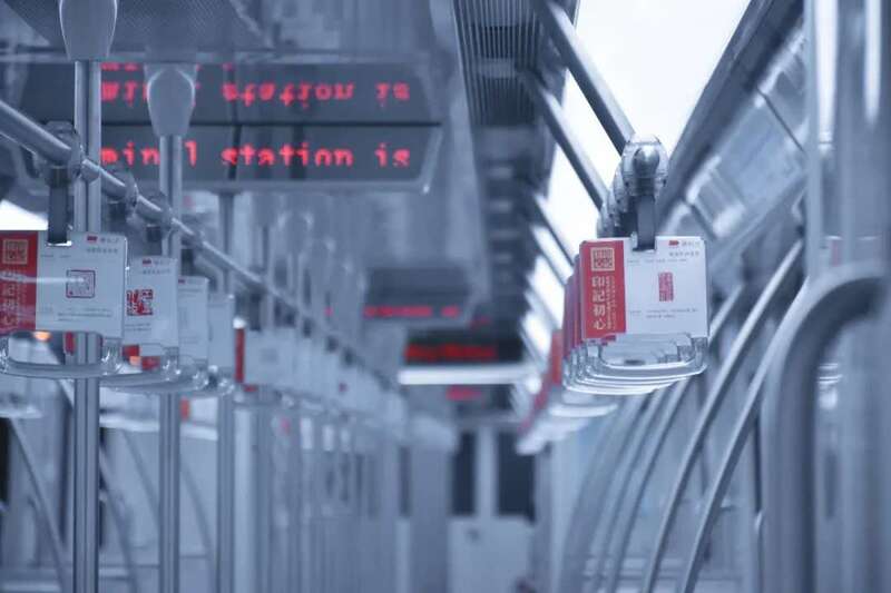 志德书院2019级新闻学院本科生沈芸星同学因为暑期实习每天都穿梭在10号线上。在她看来,百年来的红色印迹以篆刻艺术的方式生动地记载了下来,二者在小小的空间中有机结合。嵌在扶手中的红色印章,既为地铁列车带去一片温暖的红色,也是党的红色名片。地铁上的人口流动不停,但却能在这趟“红色专列”的旅程中,一起汲取党史智慧,凝聚奋进力量。