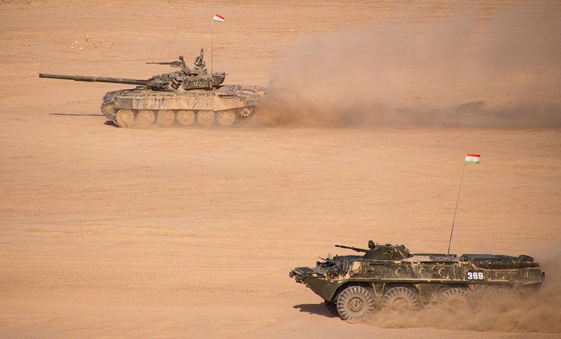 当地时间2021年8月10日,塔吉克斯坦境内哈特隆州,塔吉克斯坦、俄罗斯、乌兹别克斯坦三国联合军事演习在塔境内的哈卜尔-迈东训练场持续举行。演习地点距阿富汗仅20公里。