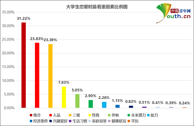 大学生恋爱时最看重因素比例图。中国青年网记者 李华锡 制图