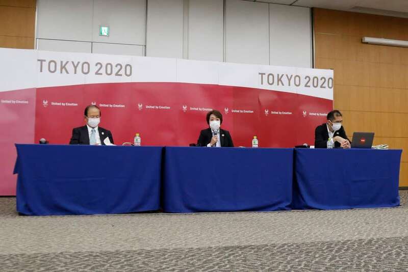 8月16日,东京奥组委主席桥本圣子(中)在新闻发布会上发言。新华社/路透