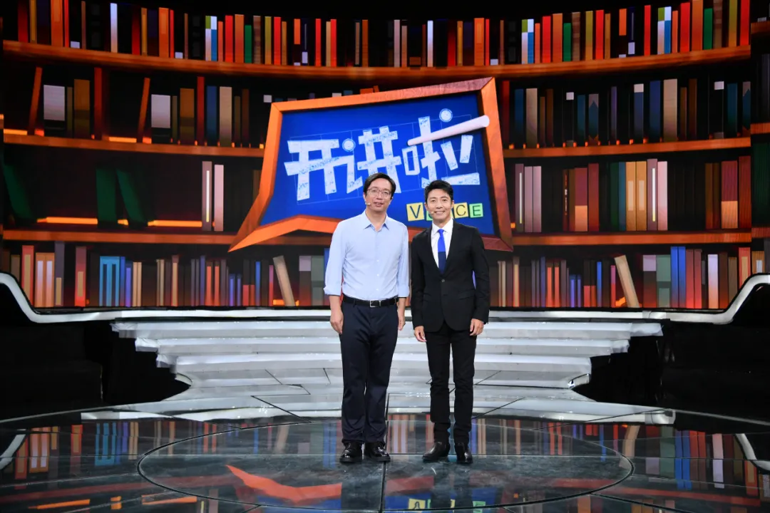 姜波(左)与《开讲啦》主持人撒贝宁合影