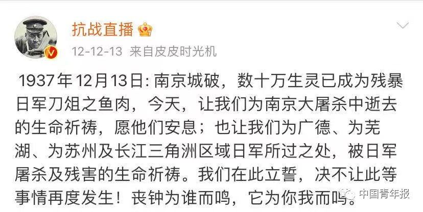 我们直播抗战,并非为了鼓动仇恨等负面的情绪,而是想适度唤起遗忘,当我们时刻牢记祖辈们承受的苦难、恐惧和屈辱时;当我们体味祖辈们是如何在国家民族危亡之际抛弃前嫌,实现民族和解时;当我们体味祖辈们是如何从容慷慨地走向死亡,以身体为这个国家献祭之时;相信我们对于现实将有更加成熟和理性的思考。