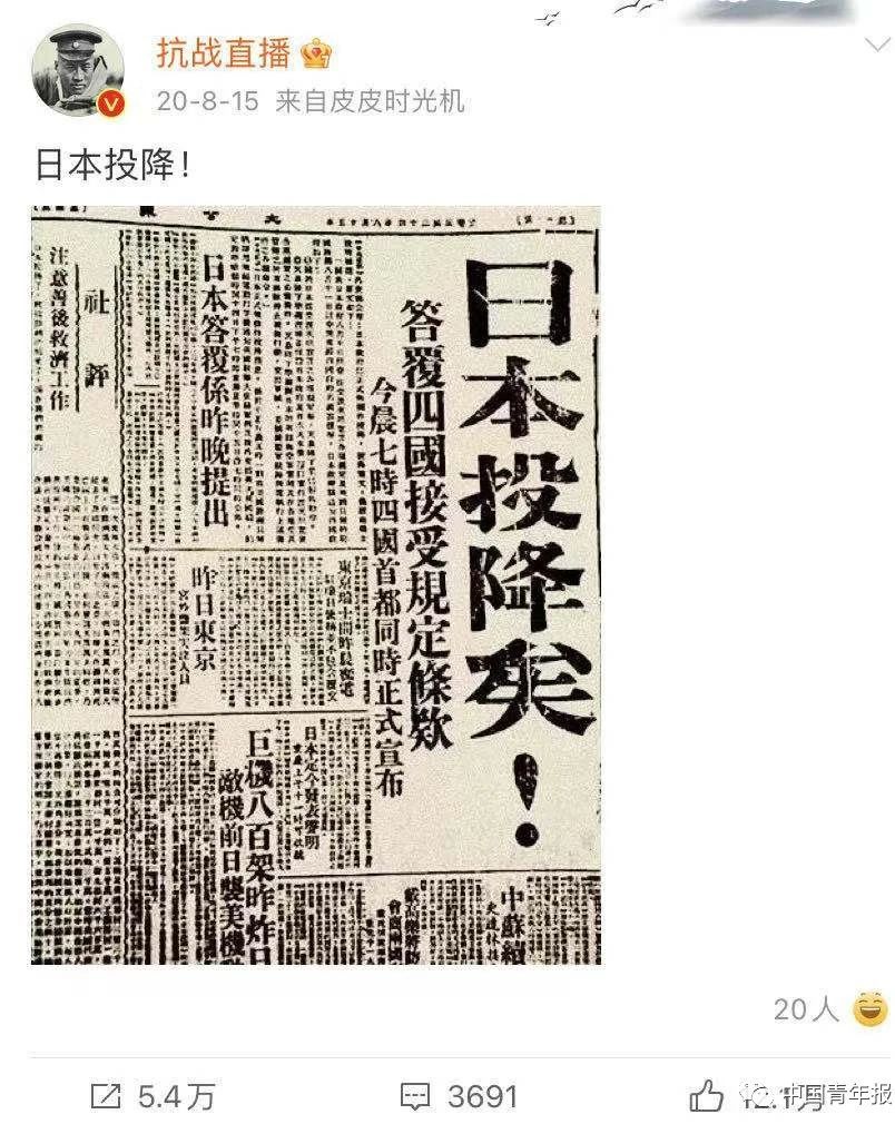 这本被血泪浸湿又写满不屈的“历史书”,终于在2020年8月15日,“直播”到了日本投降的日子!