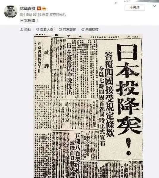 去年8月15日,一个名为@抗战直播 微博账号,火速出圈。