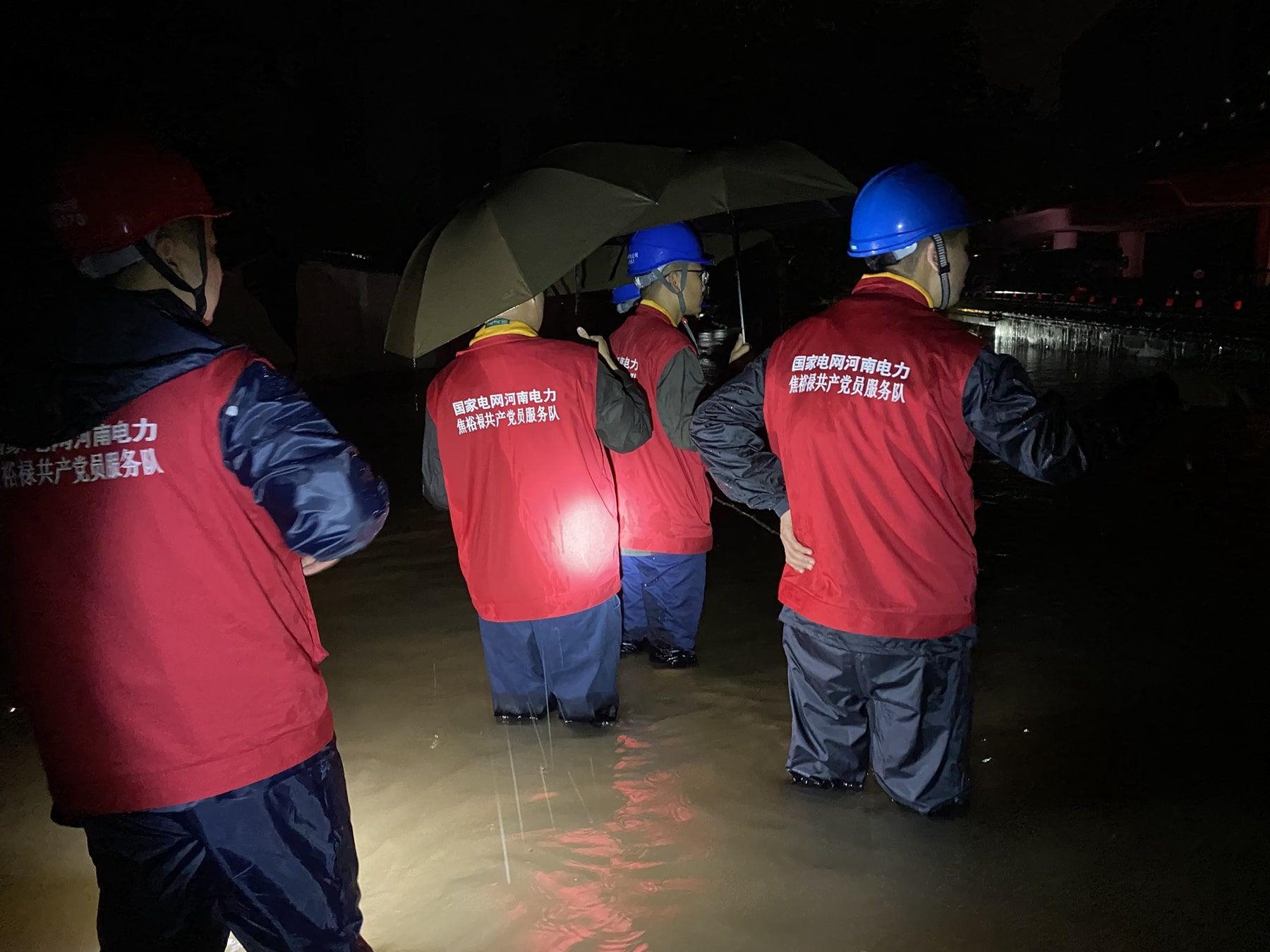 暴雨滂沱,积水齐腰。从不停电作业中心到河医院区仅仅五六百米的路程,队伍行进中的艰难程度远远超出了队员的想象。