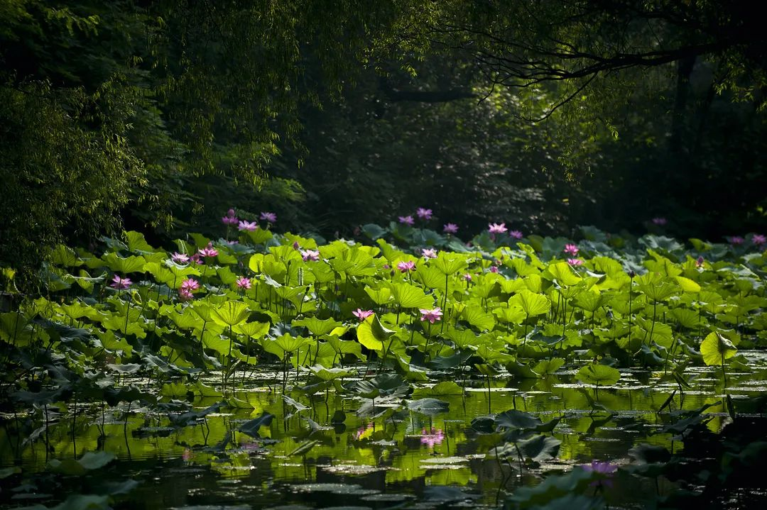 陶醉于碧色的池塘