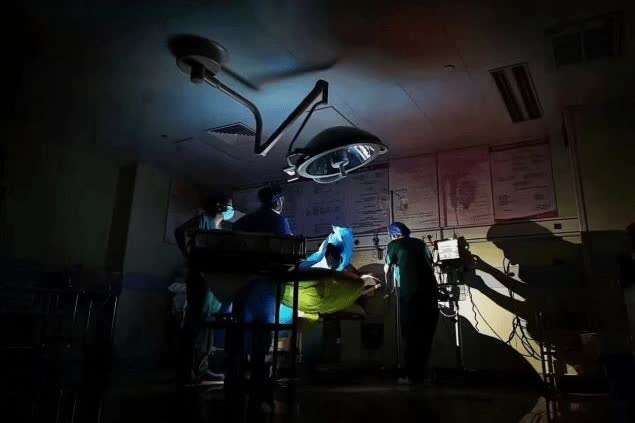 借着微弱的应急照明灯,产科医生、助产士、麻醉师等各司其职,有条不紊地为产妇接生。20时22分,一个婴儿来到了这个世界。