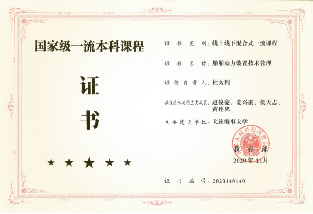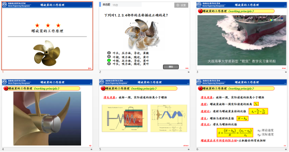 《船舶动力装置技术管理》课程是大连海事大学轮机工程专业的必修课,是轮机工程专业大三学年下学期的一门综合性强、挑战度高,交叉融合学生所学专业知识,用于培养学生解决复杂工程问题综合能力和高级思维的核心专业课。该课程是在国家级精品视频公开课、国家级“十一五”规划教材和省级“十二五”规划教材基础上建设完成的。该课程通过融合课程MOOC、课程群线上资源、双语雨课件等优质内容,教学内容几经更新,形成了涵盖动力装置、技术、工程、管理、体系等内容的架构。课程创建了“互联网+黑板+移动端”的全时空混合式教学体系,深度挖掘了课程中蕴含的交通强国、智能船舶、环境保护、工匠精神等思政元素,打造完成了校级课程思政示范课程。