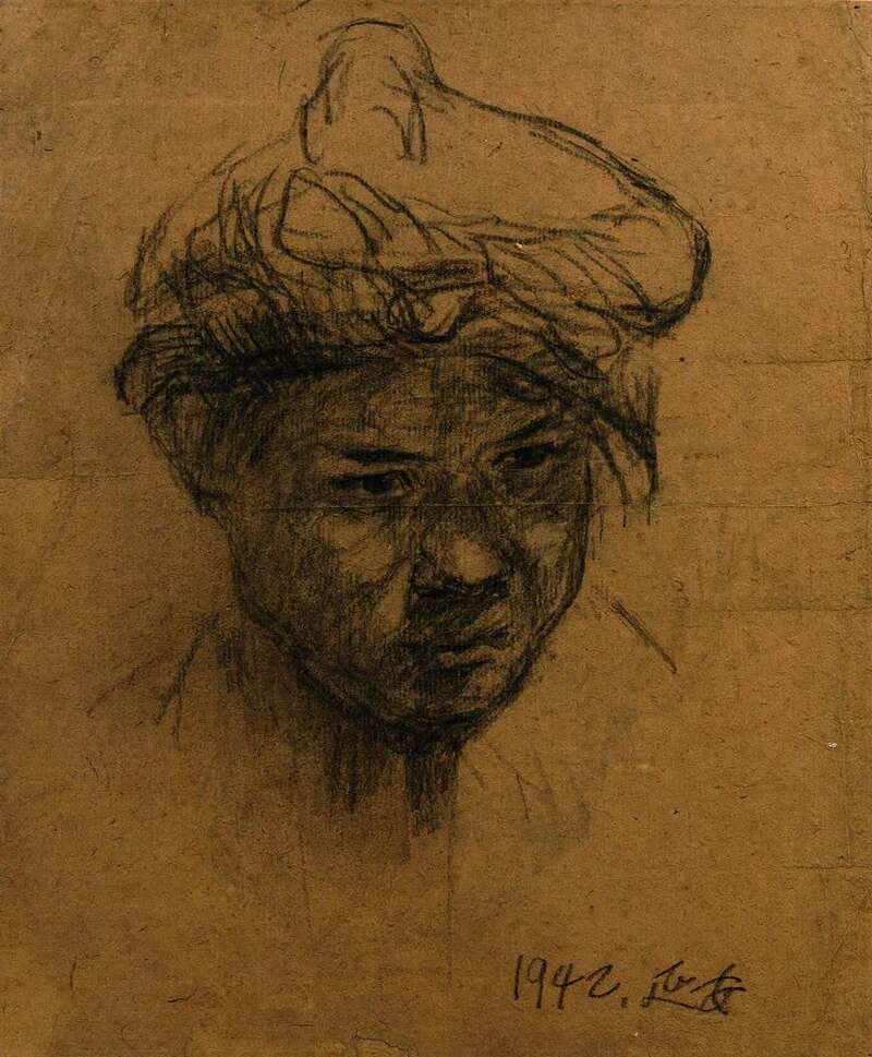 边区农民 王式廓 1940年 32.4×25.6cm 纸本炭笔 中央美术学院美术馆藏