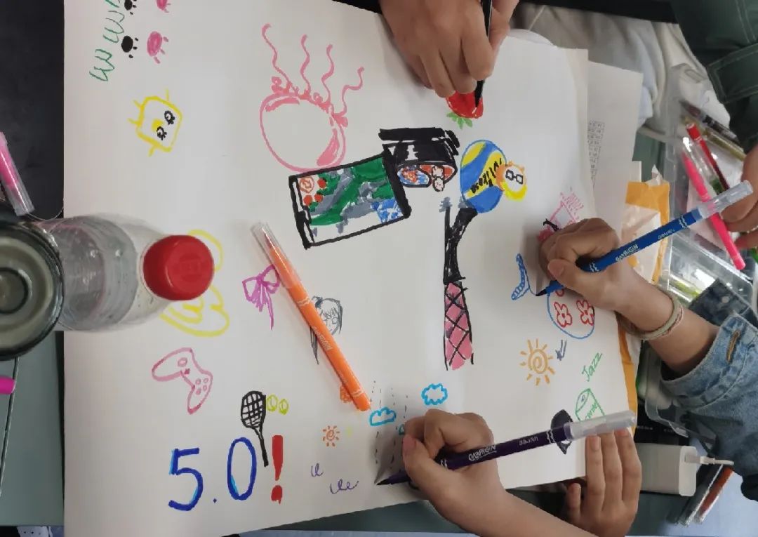 同学们在课堂中小组创作的场景