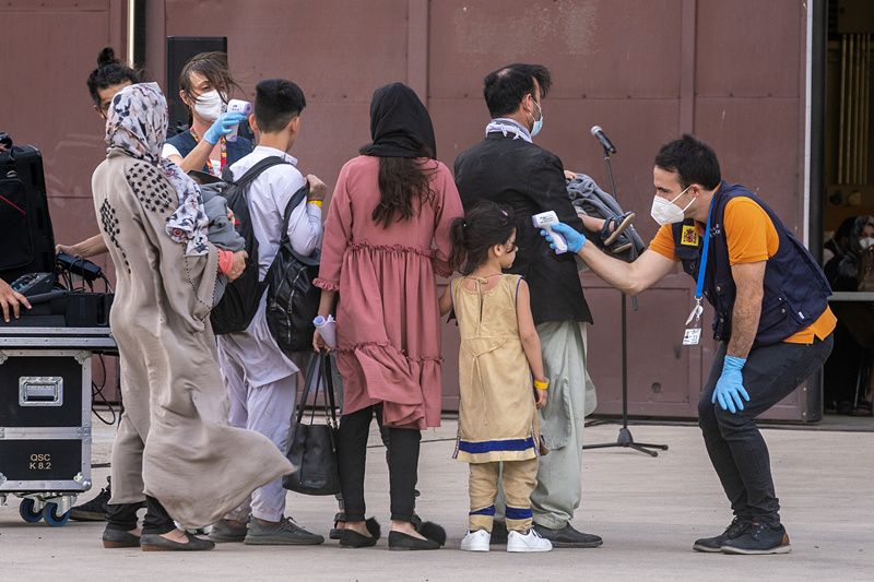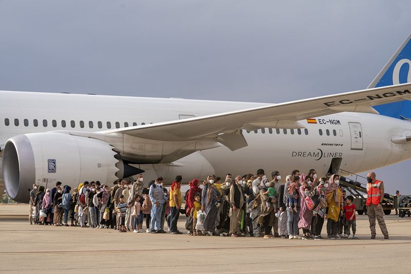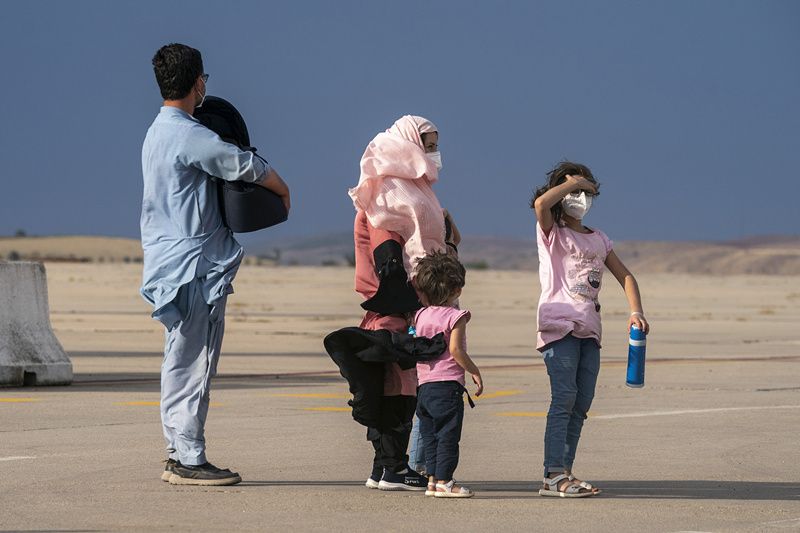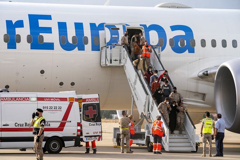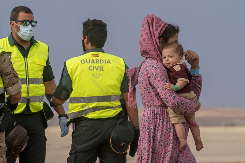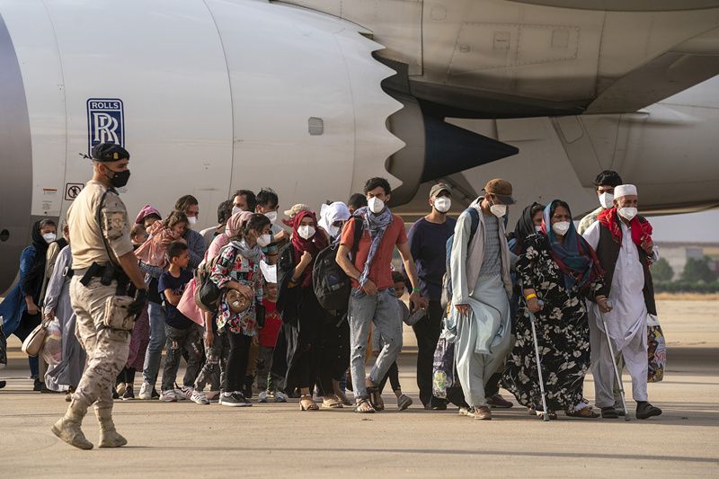 当地时间2021年8月23日,西班牙首都马德里,从阿富汗乘坐飞机撤离的人员停留在当地一座军事基地。