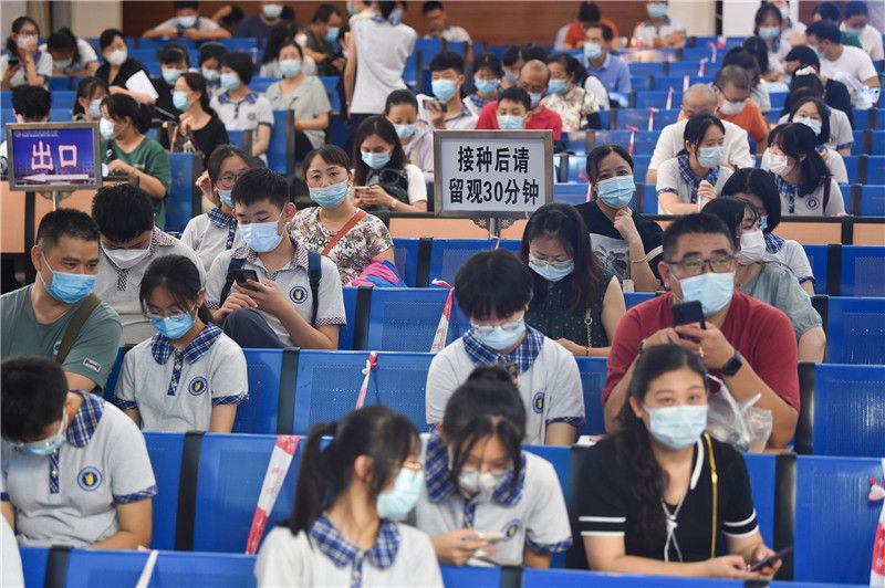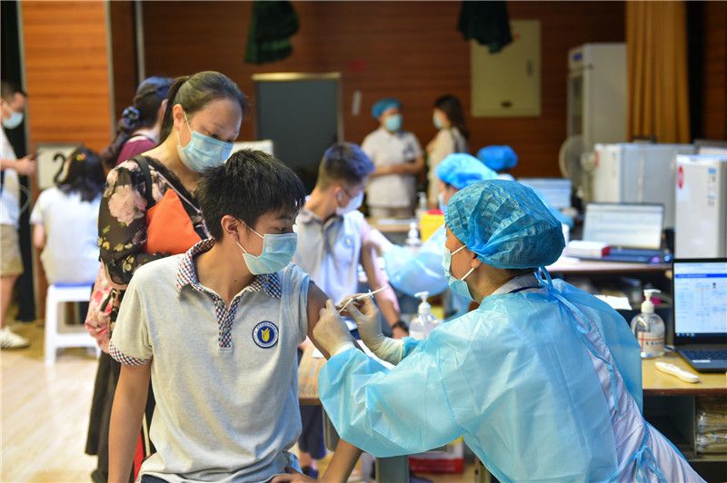 2021年8月25日,在南京市田家炳高级中学,学生接种新冠疫苗。