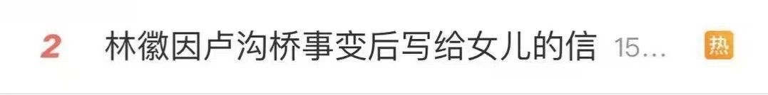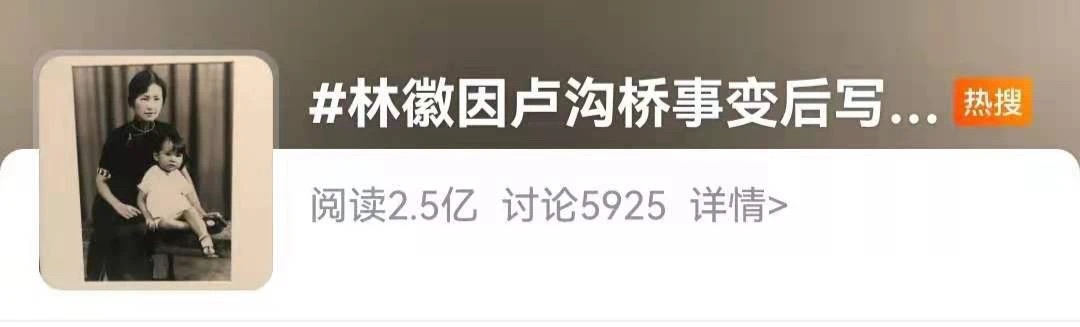 这是1937年卢沟桥事变后林徽因写给女儿的信中的第一句话。这么一句简单而温柔的话语,却让人感到内心的震撼。近日,在微博各类流行话题中,这封信冲上了热搜榜第二,迅速获得了大量的关注和讨论。