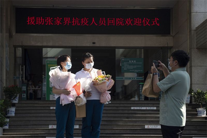 2021年8月25日,长沙,湖南省人民医院援张家界医疗队队员凯旋。
