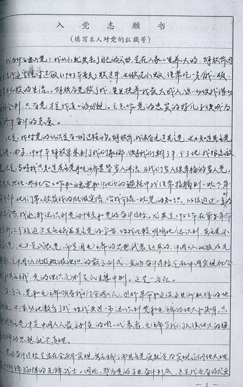 郦渭荣的入党志愿书