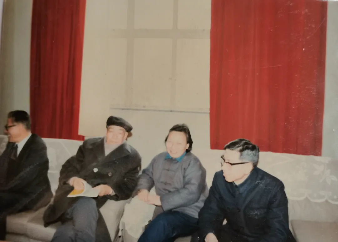 郦渭荣与老院长曹漫之(左二)、党委书记庄咏文(右二)一起谈教改