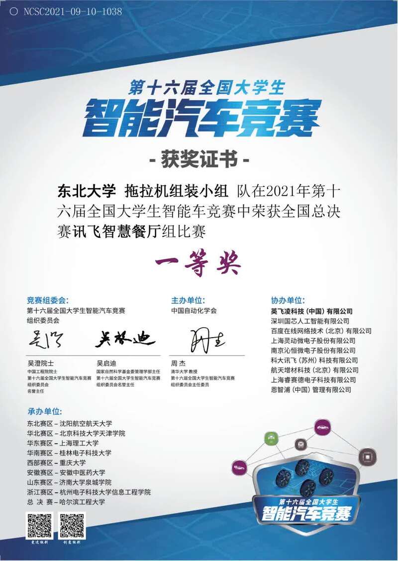 在本届赛事中,东北大学智能车实验室(南湖)团队由机械工程与自动化学院马明旭、李小号老师指导,杨超宇、张天强同学任领队;东北大学智能车实验室(浑南)团队由机器人科学与工程闻时光、方正、迟剑宁老师指导,吴选康、孙浩翔同学任领队。团队在本届赛事中获得我校在全国大学生全国智能汽车竞赛中的历史最好成绩。