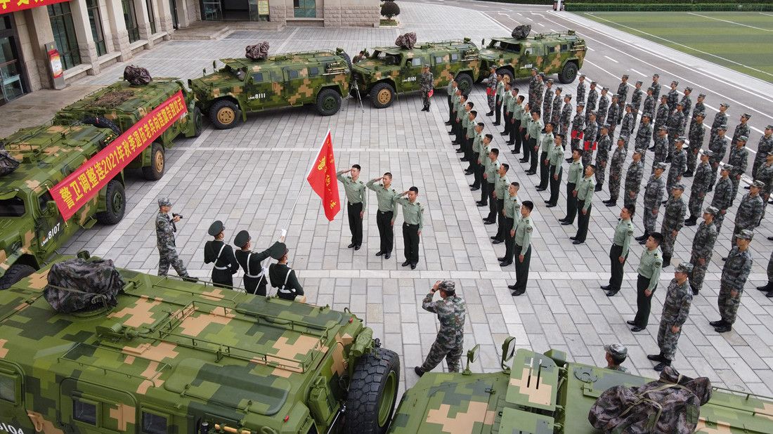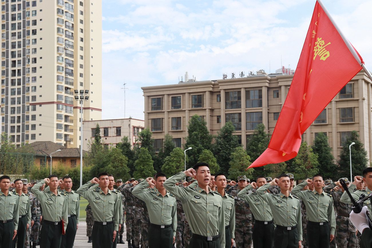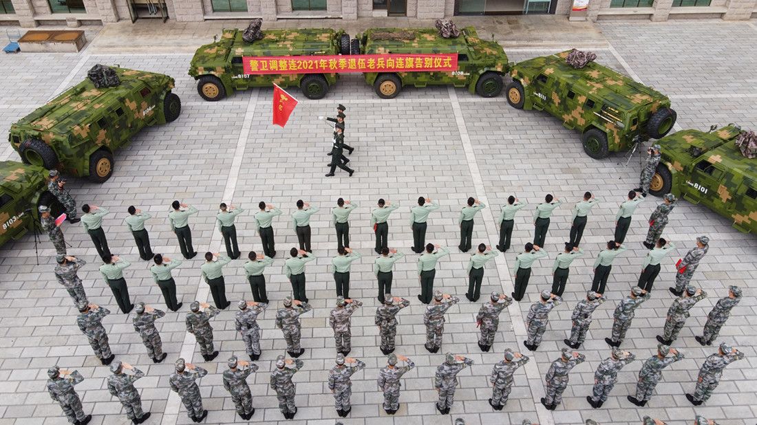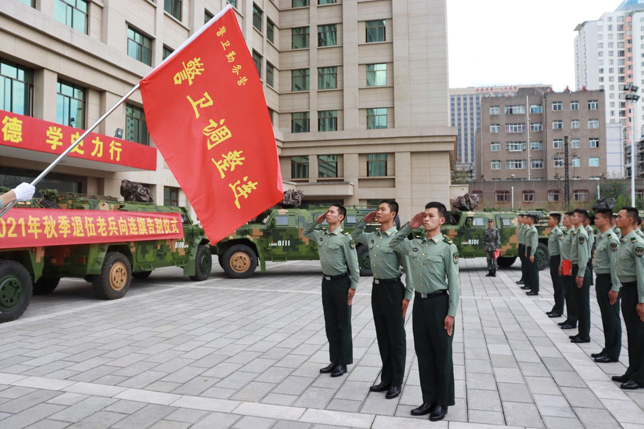 2021年8月29日,昆明,第75集团军某旅警卫调整连2021年秋季退伍老兵向连旗告别仪式活动现场。