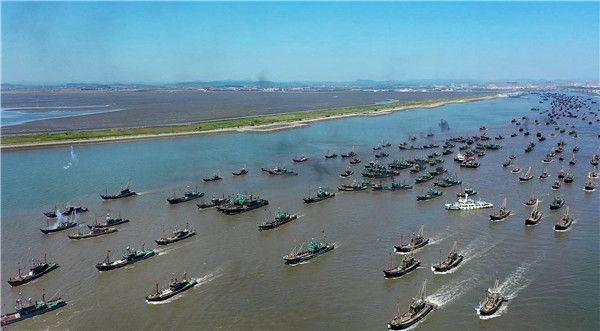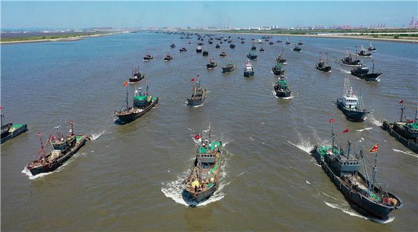 2021年9月1日,辽宁丹东,为期四个月的黄渤海2021年休渔期结束,东港市各渔港码头上千条渔船扬帆起航,趁着潮汛顺潮而出,撒下入秋以来的第一网。