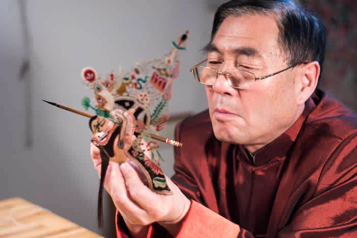 来自陕西的汪天稳是第五届中国工艺美术大师,国家级非物质文化遗产项目陕西华县皮影戏皮影制作技艺代表性传承人,担任陕西省皮影协会主席、中国西安皮影博物馆副馆长。据悉,他有着“ 中国皮影第一刀”的美誉,作品被中国国家博物馆、中国美院、上海美术馆等多家机构收藏。