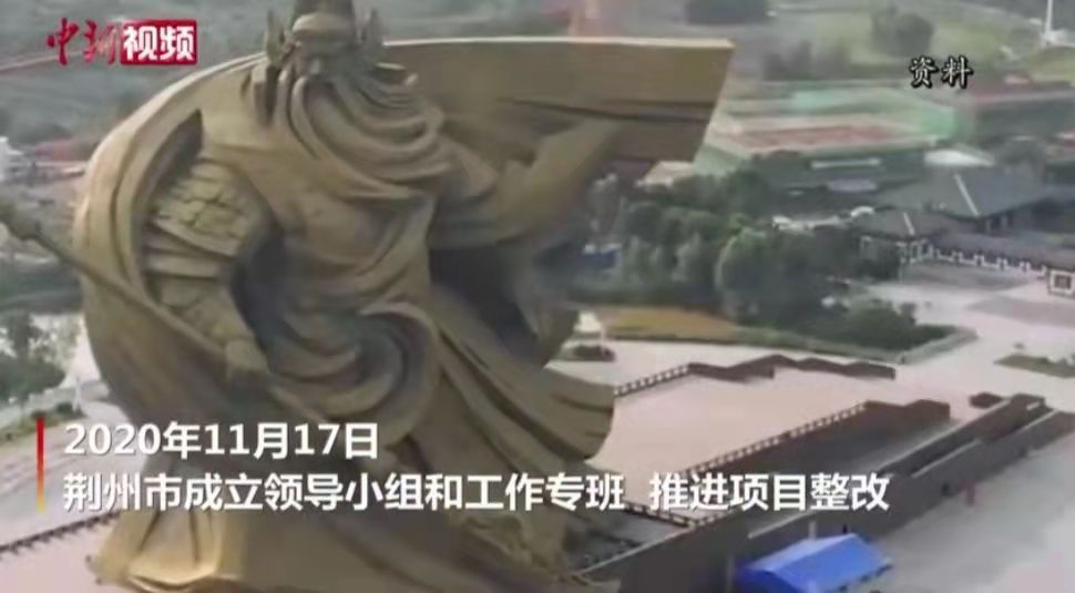 2020年10月8日,湖北荆州巨型关公雕像被住建部通报,责令整改。通报称,湖北省荆州市在古城历史城区范围内建设的巨型关公雕像,高达57.3米,违反了《荆州历史文化名城保护规划》有关规定,破坏了古城风貌和历史文脉。