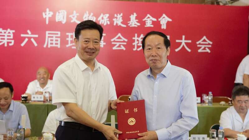 大会投票选举产生第六届理事会,由21位来自文博单位、社会组织、重要捐赠人、知名企业、专家学者和新闻媒体等方面人士组成;大会选举国家文物局原局长刘玉珠为理事长,陈东升、李纯、郭凯天、何超琼、户海印、梁钢为副理事长。