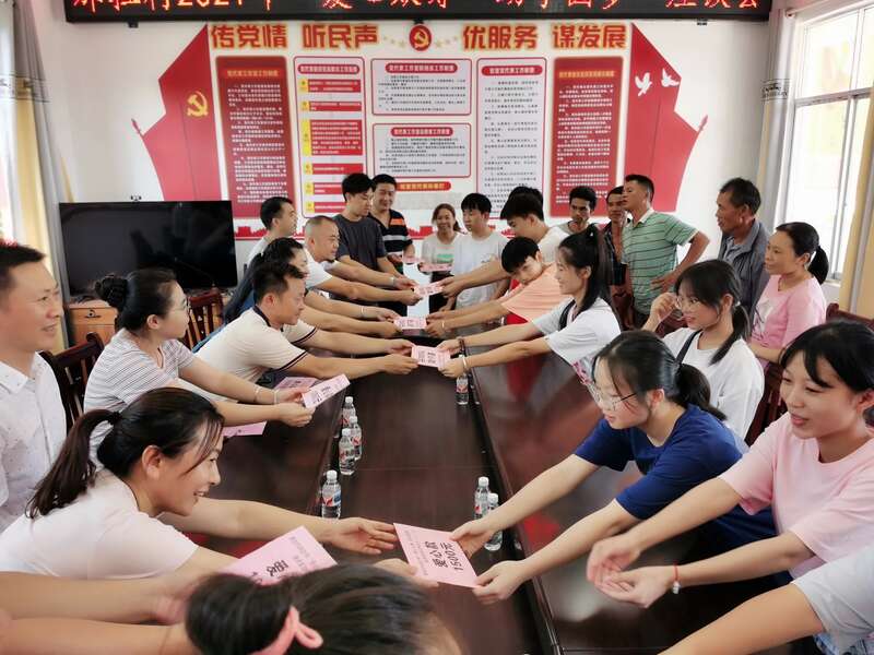 村民众筹的助学爱心款发放给该村14名考上大学的优秀学子。