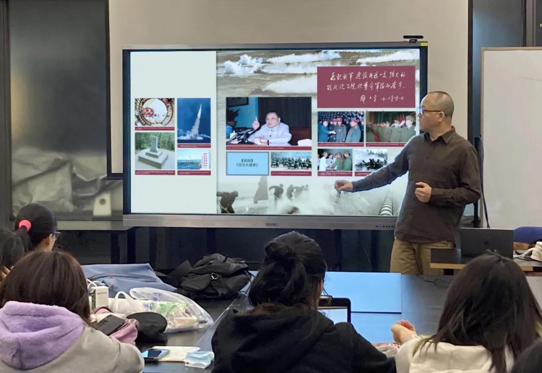 陈磊副教授带领研究生重点讨论邓小平关于强军内容的版式设计,紧紧围绕1987年邓小平参观“中国人民解放军新时期建设成就展览”时的题词进行设计,将题词手书“为把我军建设成为一支强大的现代化正规化革命军队而奋斗”放在关键位置,这既是邓小平长期以来对军队建设的实践总结,同时也为新时期军队建设设定了发展目标。