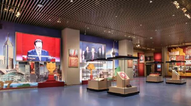 设计香港和澳门立体背景壁饰造型,通过组合图文展板、实物陈列组合、珍贵的影像资料,展示香港和澳门回归祖国的盛事。