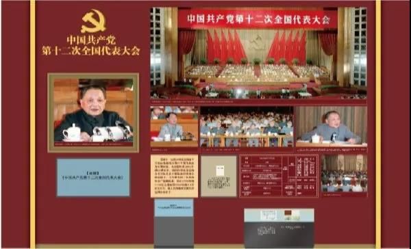 这一单元版式设计通过图片、文字、文物、多媒体展项及图版组合,集中展示中国共产党第十二次全国代表大会在北京举行及改革开放全面展开。