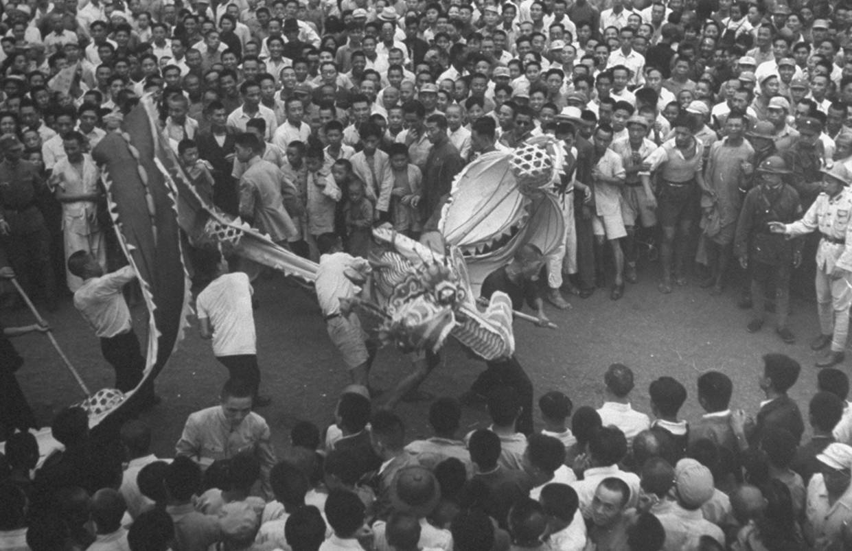 抗战胜利,民众在街头欢庆。