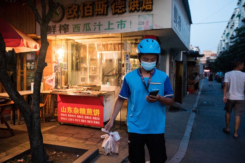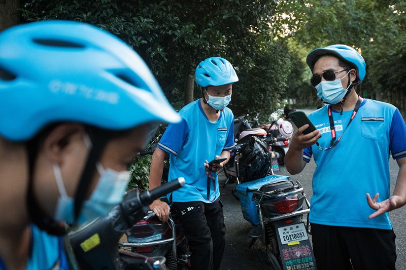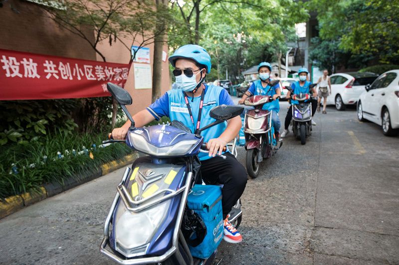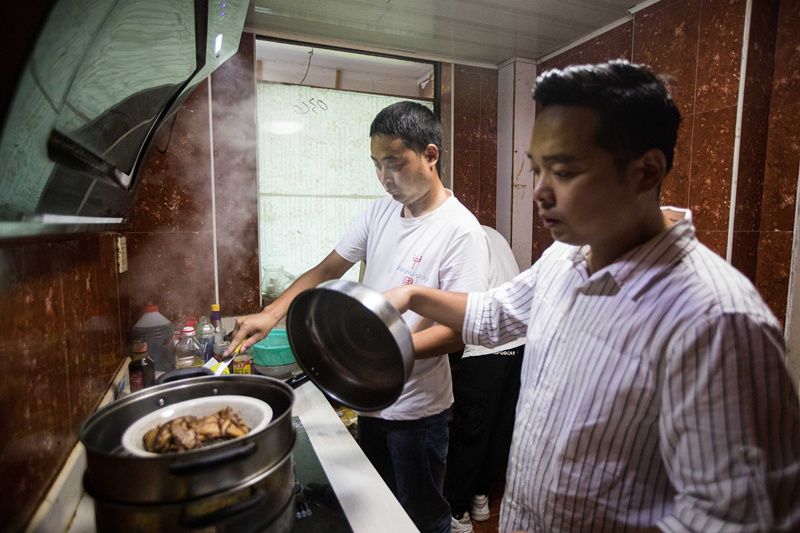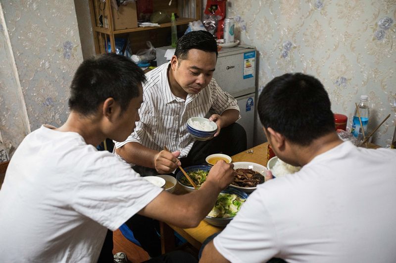 2021年8月31日,浙江省杭州市,宋远行、宋远杰和宋北京三兄弟出生于安徽宿州市砀山县,现在组团在杭州送外卖,稳定月入过万。每天中午送完外卖后,三兄弟会一起回到出租房,一起烧饭一起吃。