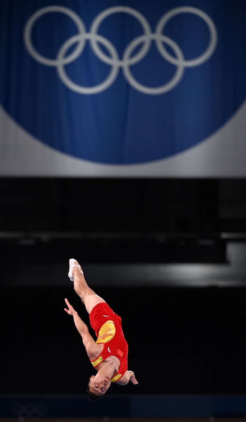 7月31日,东京奥运会男子蹦床比赛,中国选手董栋晋级决赛。新华社记者李尕摄