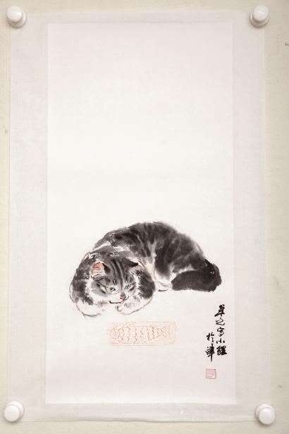 高卓之为李瑾所拓鱼纹汉砖配画《馋猫图》