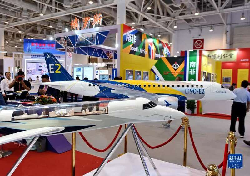 2021年9月8日,2021金砖国家新工业革命展在厦门开幕,这是在展览上拍摄的参展飞机模型。新华社记者 林善传 摄