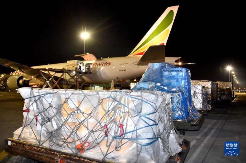 2020年4月14日,中国援助的抗疫物资抵达南非约翰内斯堡奥坦博国际机场。新华社发(中国驻南非大使馆供图)