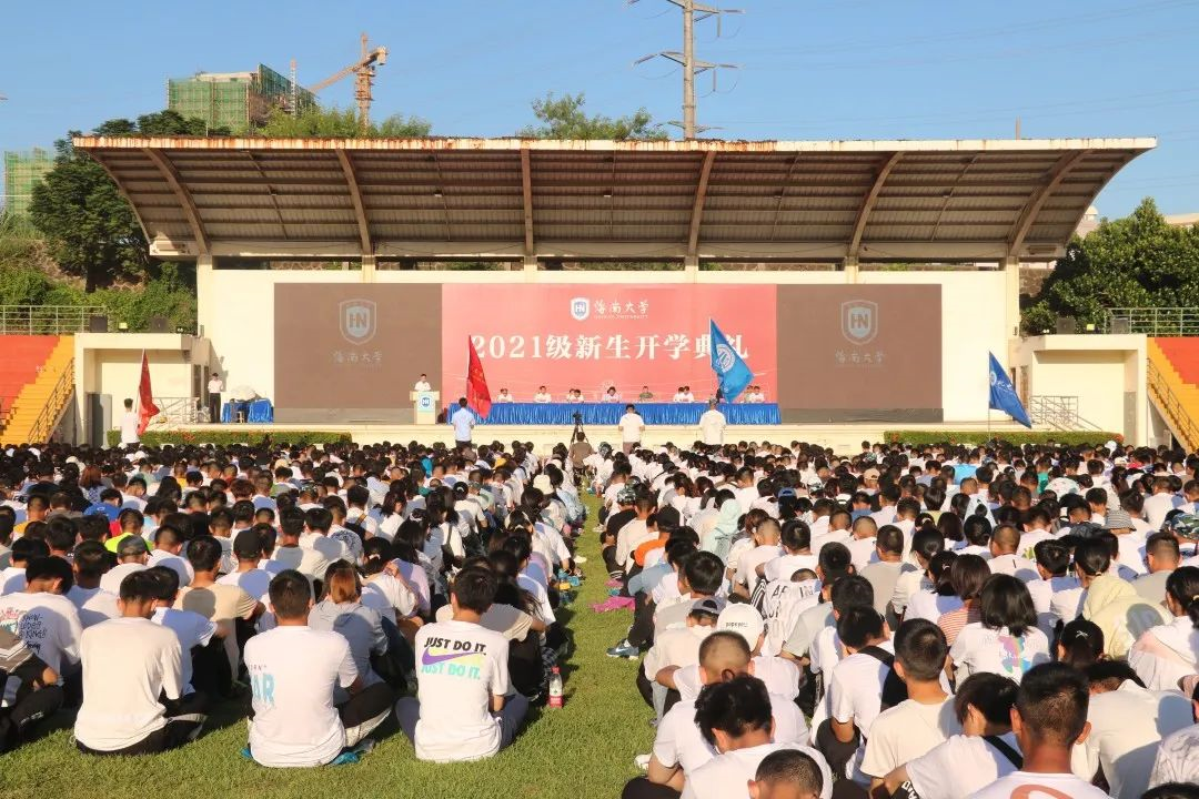 海南大学相关职能部门负责人,教师代表、学生代表,以及2021级全体新生参加开学典礼。